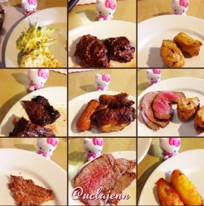 The churrasco is brought to your table and I tried a little bit of each meat! There was Polish Sausage, BBQ Chicken Thighs, Pork Loin Marinated in Passion Fruit, Marinated Skirt Steak, Tri Tip, Top Sirloin (Picanha), Garlic Beef and Smoked Short Beef Ribs. Each meat offering was distinct in flavor and fulfilling!. For someone who was not eating meat for six weeks, this was meat overload.