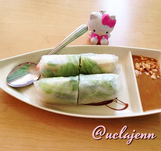 During my trip here, I tried out the crunchy casaval rolls. The rolls had jicama, tofu, roasted peanuts, carrots, basil inside rice paper and a peanut dipping sauce. It was like eating a fresh salad but egg roll style! There was peanut sauce for dipping and it had little peanuts in them and added the taste into these rolls. It was a great sauce that gave plenty of flavors to the rolls.
