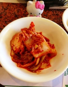 Those were the staters of our meal here. For our main meals, we had to choose between their tofu soups or their special dishes. Their special dishes consists of the meat dishes like bulgogi and the bi bim bap. Since I’ve had their tofu soups before and never ever had bi bim bap, I decided to get the bi bim bap. This “mixed dish” had a fair share of veggies (carrots, cucumbers, carrots, bean sprouts and seaweed). It also had fried egg and sliced beef. The spicy sauce was served on the side. Mixing in all the ingredients was fun! The spicy sauce mixed in with all the veggies and the white rice made for a very good dish. It was like a giant salad with rice :).