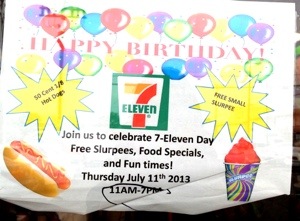Happy 86th birthday 7-Eleven! Today 7-Eleven celebrated their 86th year of being a convenience store offering quick goodies and treats! They were offering 50 cent hot dogs and the ever famous free slurpees!