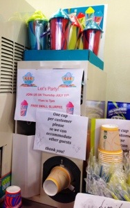 Aside from getting a free slurpee, I found out some interesting trivia today! The slurpee is indeed a special way to celebrate their birthday because 86 years ago the very first 7-eleven was attached to an ice house! How cool (cool in both the literal and figurative sense ;)! It does seem appropriate that an icey drink would be a way to celebrate! Here’s to more 7-11 days for 7-eleven!