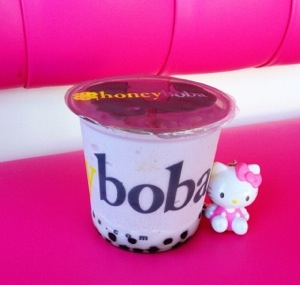 I’ve been introduced to Honeyboba before. Awhile back I went to the Lomita location and anyone who read my Yelp review then knew I instantly developed a Honeyboba crush. The pink booths, chandeliers and their taro smoothie with honeyboba simply won me over.