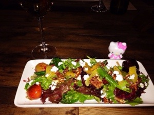 Last course or the night was a very amazing and intense dessert. It was Simon’s almond, bacon, toffee bread pudding with maple whipped cream. Simon is one of the chefs at Jackson’s and this dessert is one of his most special. It’s very unique. Lots of maple whipped cream topped a soft bread pudding. There were also plenty of crunchy almond, bacon and toffee. How appropriate the dessert had a little bit of bacon because my Hello Kitty twin Michelle was also in attendance at this dinner. Michelle is not only my hello kitty twin but also my fellow dessert fan/bacon buddy. Michelle and I have always bonded over dessert and foodie discoveries and this dessert both made us go ooh and ahh. Honestly I could not get through all if it. It was very good but also very sweet. Although the bacon made it unique, I think I could have gone with just bread pudding and a little bit of toffee.