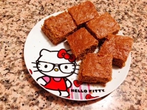 In 40 minutes, my kitchen was filled with the sweet aroma of fresh baked pumpkin bread. I cut the bread into little squares and tah dah…perfectly pumpkin-licious petite treats! Yay!