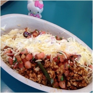 Like it’s other menu offerings, you can choose to get a bowl, burrito or a salad. I chose to get a sofritas bowl with brown rice, veggies, cheese, mild salsa and garnished with sour cream. The sofritas itself is very interesting looking, it looks like chorizo. The tofu texture is firm and makes you almost think it is ground beef or ground chicken.