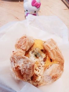 It was my first time to try a flat white. I will admit that I was intrigued with what a flat white would taste like. It’s a popular coffee drink from Australia and New Zealand that has steamed whole milk over a double shot of espresso and topped with microfoam. It’s very much like a latte. I found the flat white here to be a nice, smooth cup of coffee. It’s slightly bold in taste and definitely gave a kick start to my day. Normally for a flatwhite, the microfoam is swirled into some type of coffee art like hearts or (maybe even a hello kitty shape 😉 and so I was somewhat sad mine didn’t really have a design. It was still a good first try for me though of a flat white.