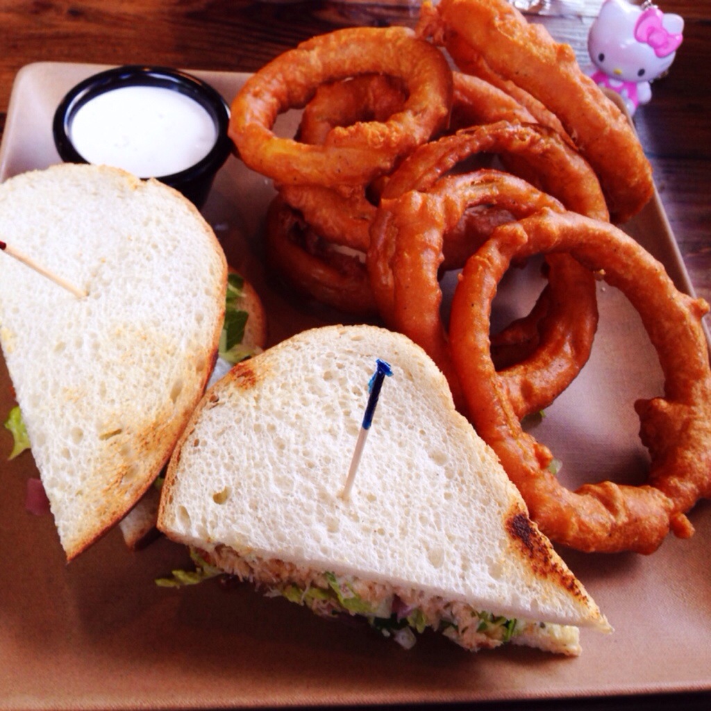 I got the crab cake sandwich with a side of house cut onion rings. The crab cake sandwich was filled with a big crab cake, caramelized onion and a horseradish remoulade. I was impressed with this crab cake sandwich. The crab cake itself had a crisp crust on the outside and a creamy filling on the inside. The caramelized onion and horseradish remoulade made for a nice relish. The onion rings were a great side! The onion rings here are made fresh to order and so they come out nice and crispy. They hand batter each. The batter has a nice, buttery like flavor to it. I am a fan of these onion rings!