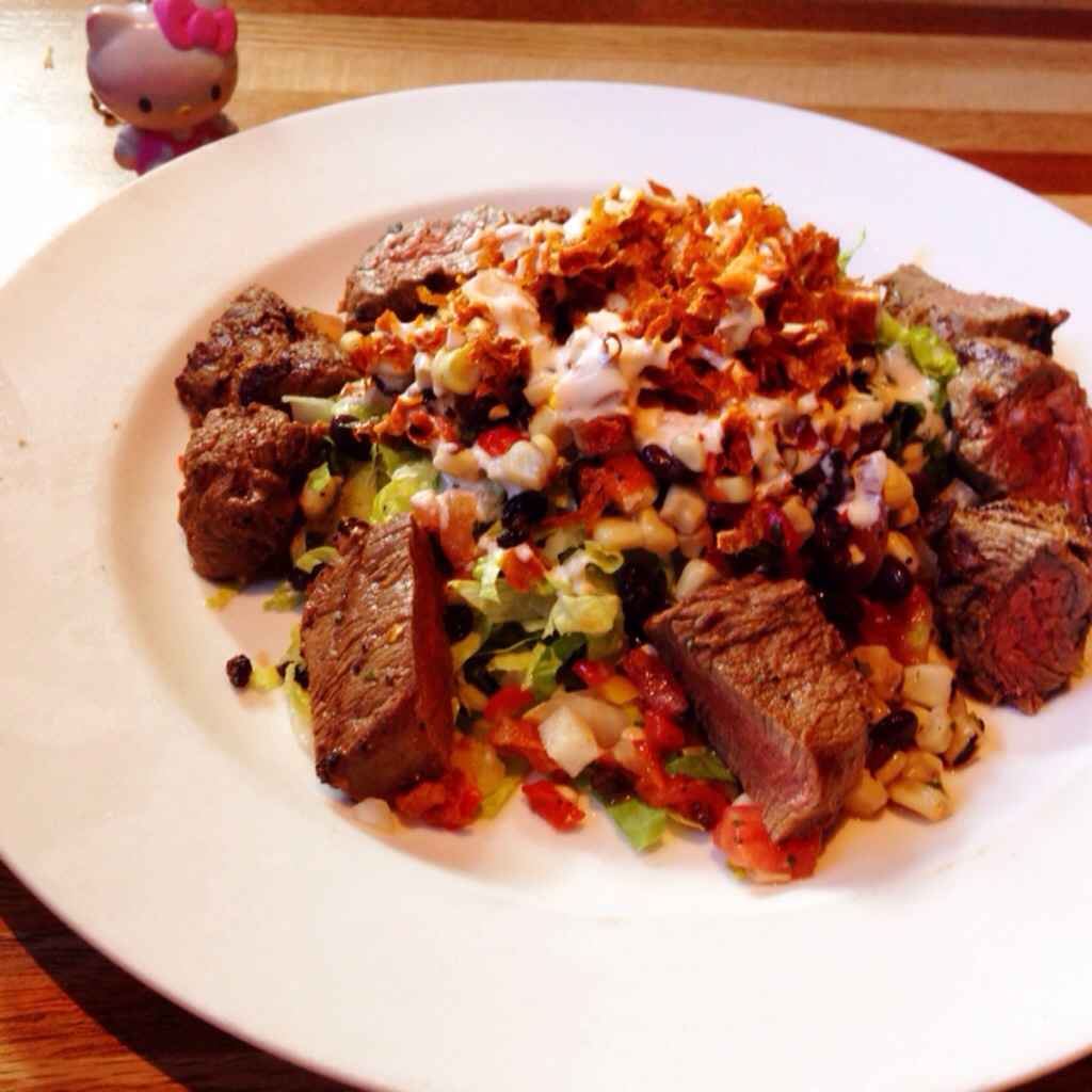 My friends got salads for their entrees. One of my friends got the Filet Mignon Salad. It was a beautifully plated salad with chipotle ranch, marinated filet chunks, pine nuts, romaine, corn, roasted peppers, jicamas and black beans.