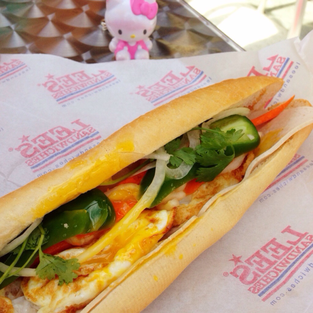 Their baguettes are used for their famous bahn mi sandwiches! I made sure sure to pick up one of those sandwiches when I stopped by the grand opening event. Since it was breakfast time, I chose to get a Bahn Mi Op La or a Vietnamese fried egg sandwich. Lee’s Sandwich’s version is packed with two sunny side eggs, pork slices, house pickle, onion, jalapeno, cilantro and their house mayonaise. A fried egg always brings a little bit more deliciousness to anything and delicious indeed sandwich was. The crispy baguette was perfect for dipping for the messy, yellow yolk oozing out from the eggs. The house pickle brought plenty of flavor! There was plenty of veggies inside. Eggs and vegetable delight!