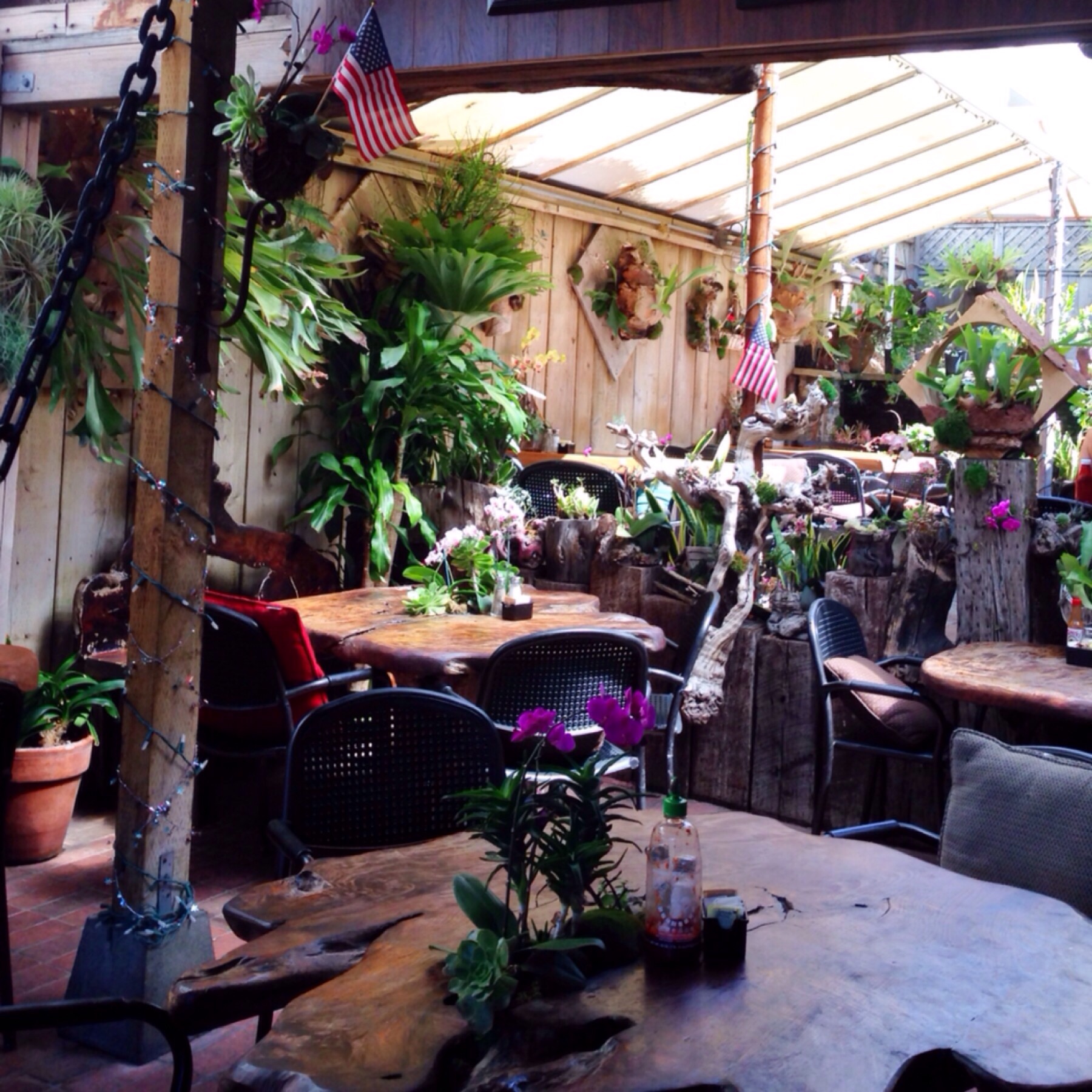 One of the primary reasons I really like Sloopy’s is because of the overall atmosphere. It’s adorable and heartwarming because you get to sit in a patio/garden like setting. There are trees and plants all over. The benches and seats are made out of wood and tree stumps. It’s such a relaxing spot.