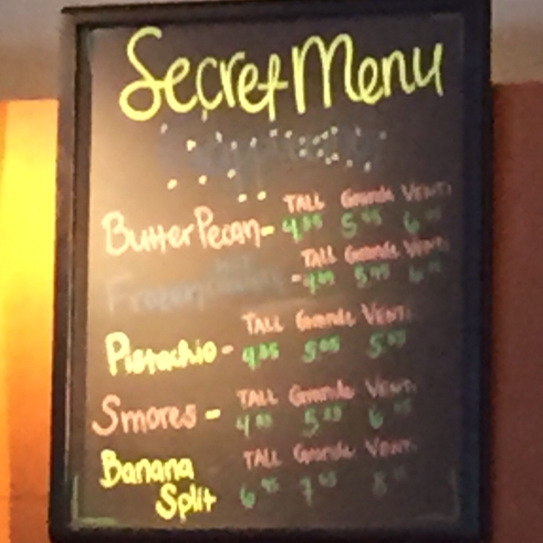 On the secret menu were the yummy flavors of butter pecan, frozen hot chocolate, pistachio, smores and banana split!