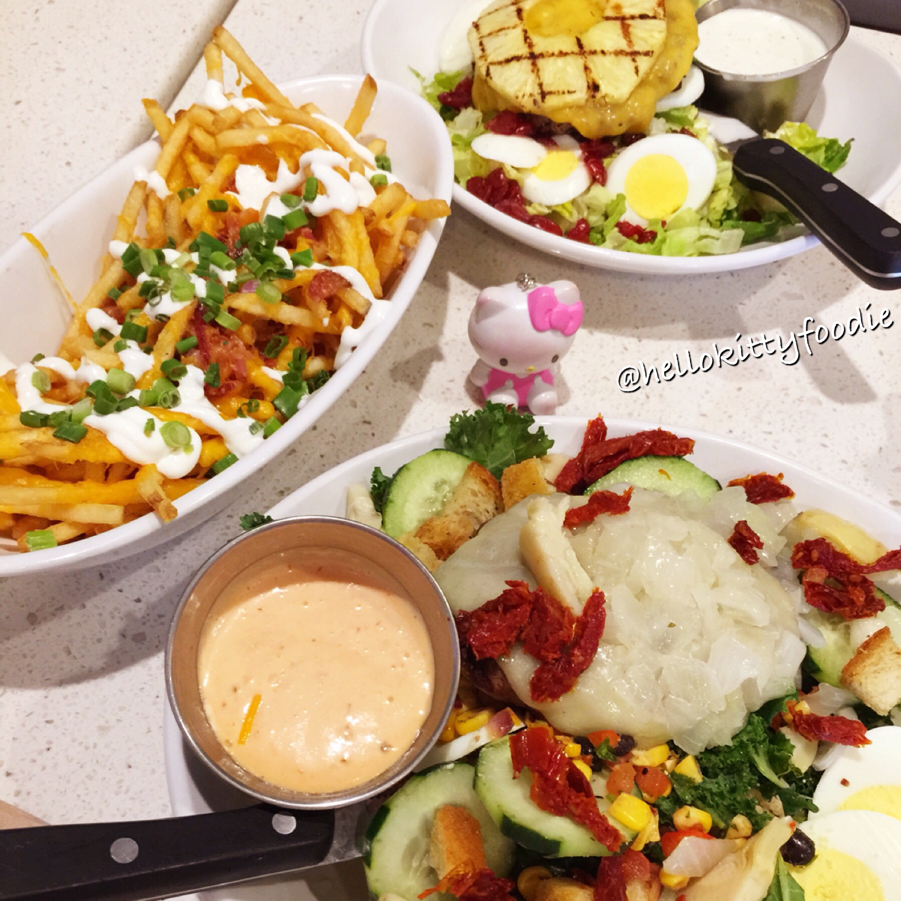 Thanks to the happy hour today, my friend and I got half off of The Counter’s Loaded spuds. The loaded spuds have sour cream and scallions, applewood smoked bacon and shredded cheddar on top of shoestring fries.