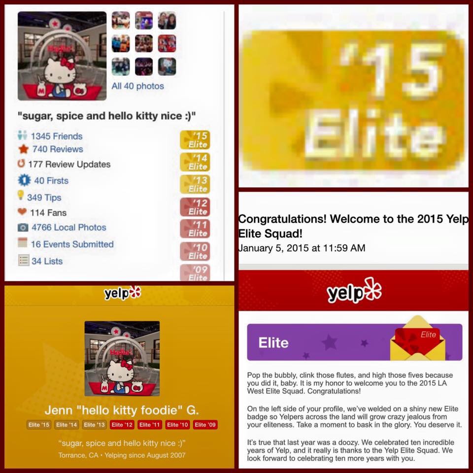I can’t believe it’s my seventh yelp elite badge! It seems like only yesterday that my Yelp journey started. It’s been quite a Yelp journey so far. There’s been interesting moments (I once got a marriage proposal via Yelp. No wedding for me though lol. I don’t think the guy liked Hello Kitty. 😉 Haha! The only shiny thing I’m sporting these days courtesy of Yelp is my elite badge). 😉 There’s been heartwarming moments (I once got the sweetest card from the folks at Susie Cakes). There’s also been some frustrations (I was a little sad after I wrote a four star review for a bakery and someone from there sent me nasty note complaining about a picture I took of their croissant. After I wrote the nicest review, all the could comment on was about a picture they didn’t like). Most of all, there’s definitely been lots of unforgettable, fun moments! (I love all the friends I’ve made through Yelp! I’ve also loved all the events I’ve been to! Thanks to my Yelp friends, this once shy little Yelper is slowly coming out of her shy little shell). All of these various Yelp experiences have made me into the Yelp Elite that I am today and I continue to write Yelp reviews with the hope that they can be helpful to others and just maybe make some smile.