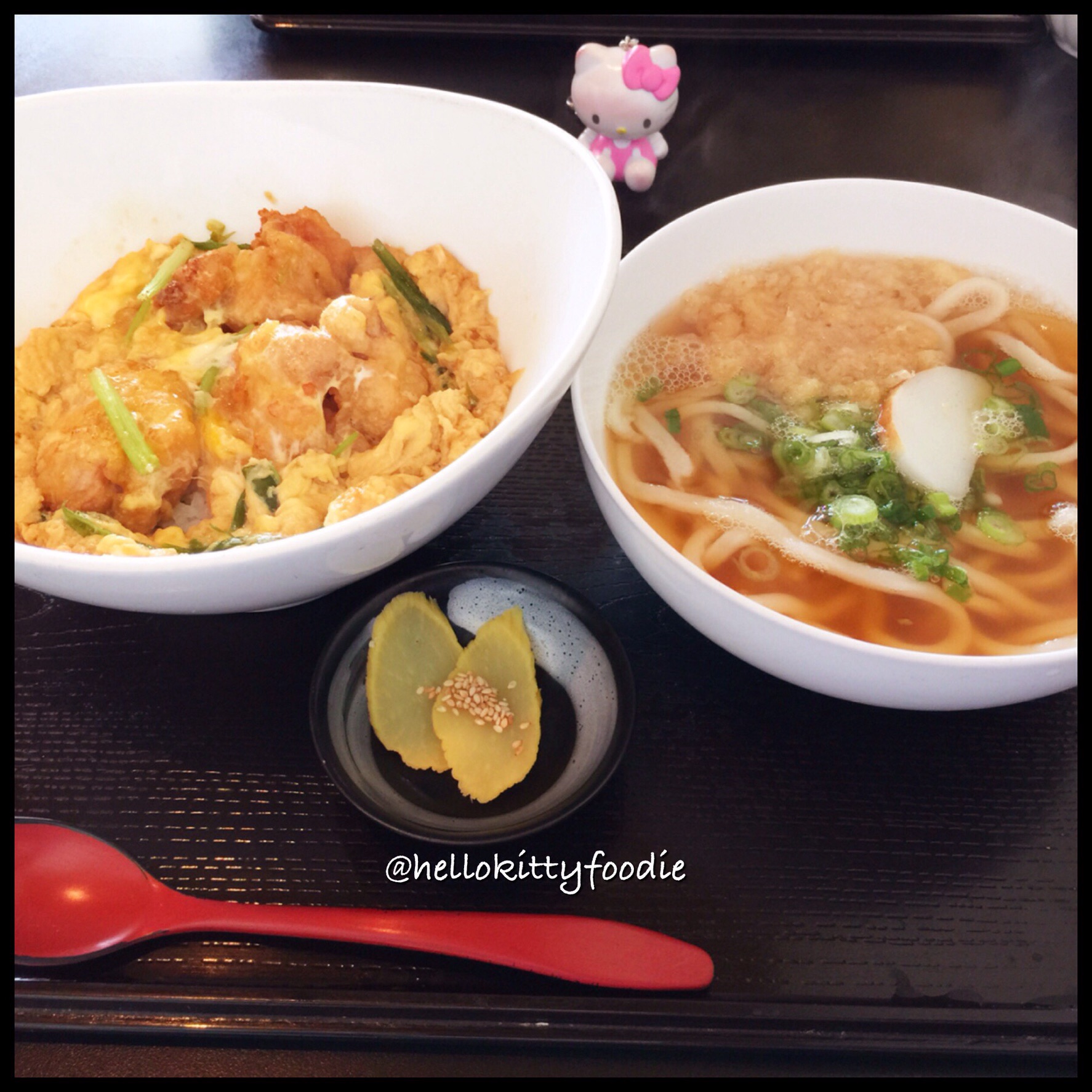 I chose to get the simmered chicken tempura and egg bowl with mini hot udon .
