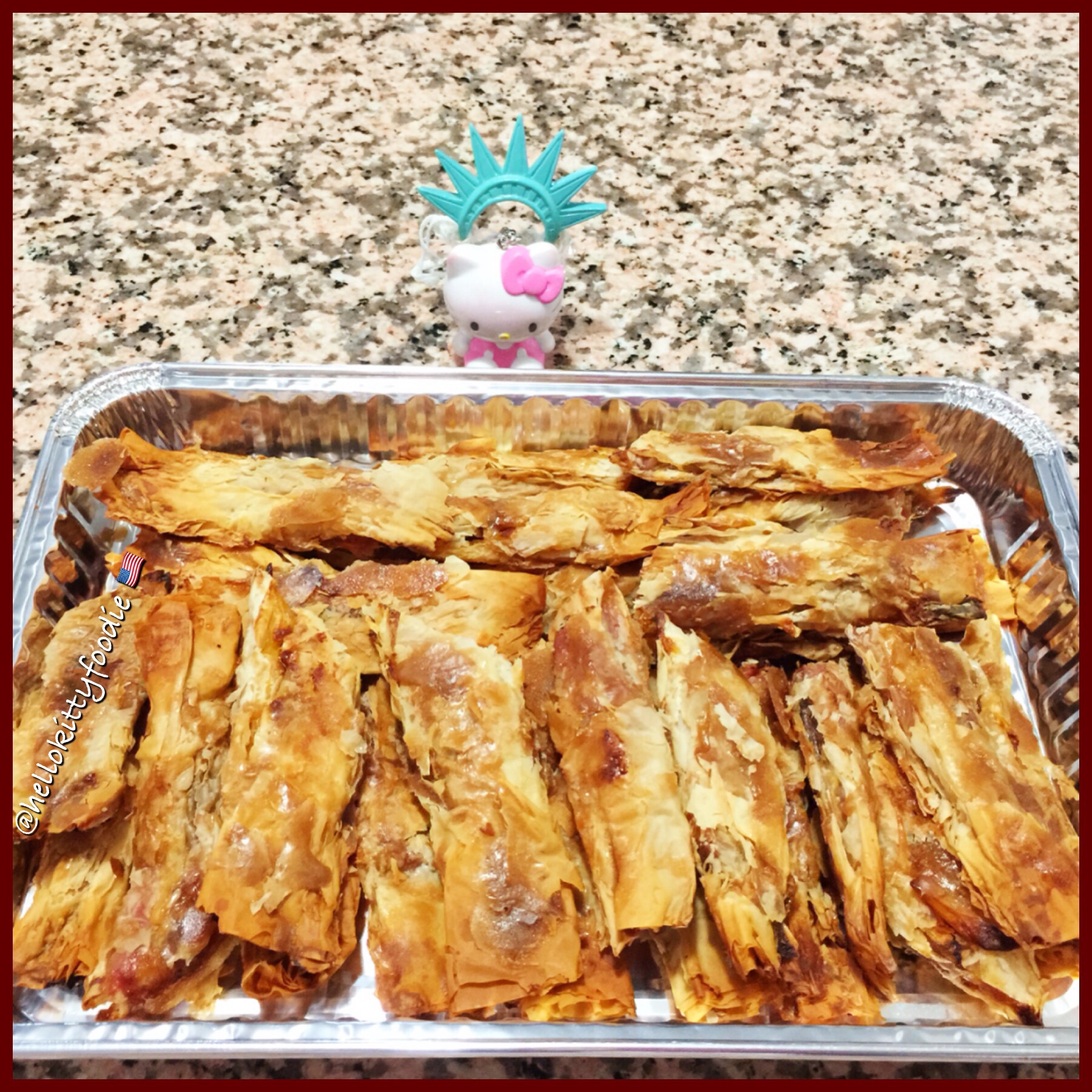 Turon or banana egg rolls is a favorite of mine. Typically made with lumpia or egg roll wrappers, this recipe I share has a twist because instead of egg roll wrappers, phyllo dough is used! I fell in love with the phyllo dough when I went to a dinner at a friend’s house and she made a baked chicken casserole with phyllo sheet wrapping. When I recently watched an episode of Adobo Nation on TFC and saw the use phyllo dough for turon, I was intrigued and knew it was something that had to be tried.