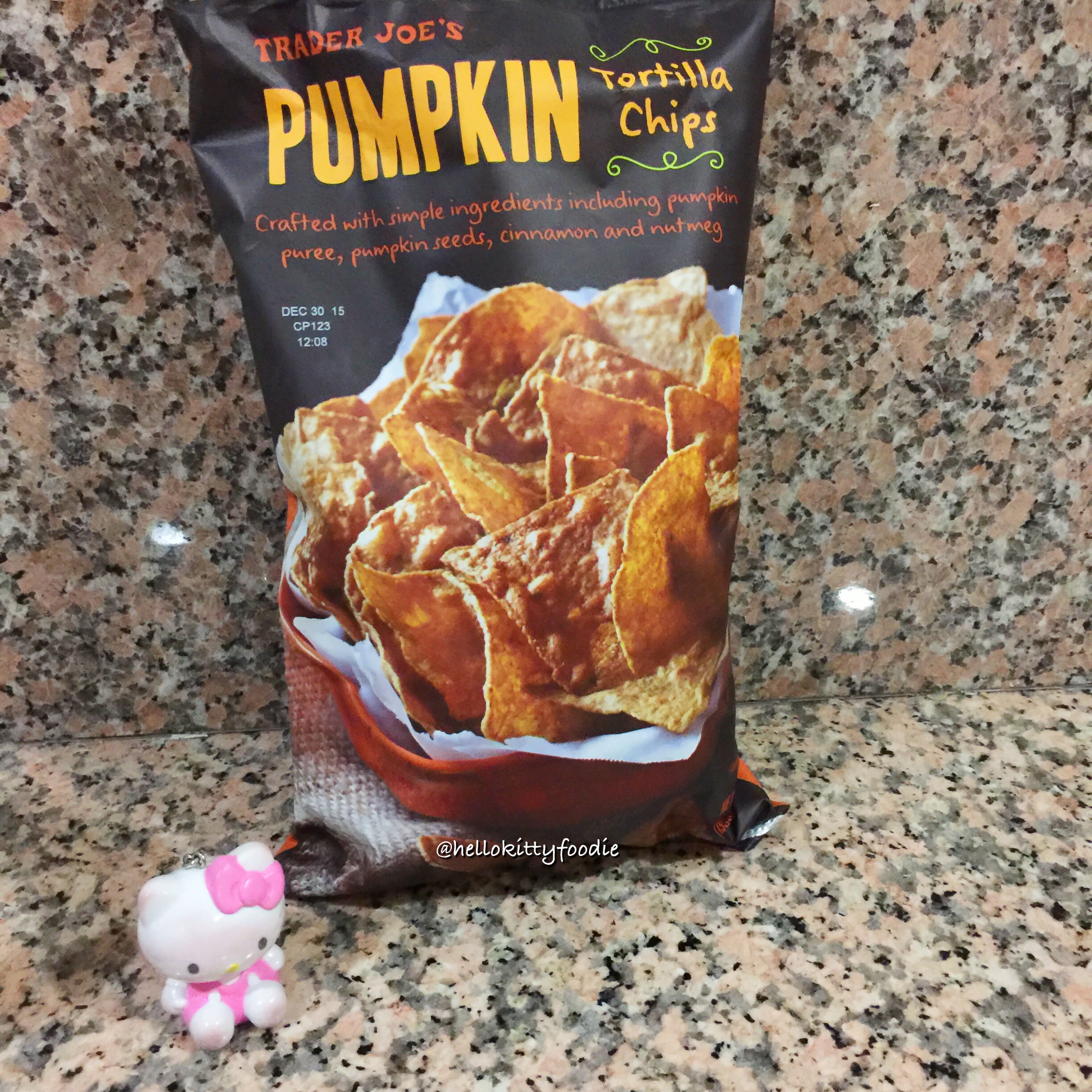 It was to much delight that I saw pumpkin tortilla chips. These tortilla chips are made with real pumpkin puree and pumpkin seeds. They’ve got a little hint of cinnamon and nutmeg as well to further enhance the fall flavor. It’s sweet, crispy and just the little perfect pumpkin snack! They would be perfect with a little pumpkin hummus! 😉