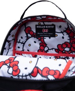 The bags will be offered in pink, black and gray. Some details include a embroidered Hello Kitty, a tonal, all over Hello Kitty print as well poppy red/white Hello Kitty interior.