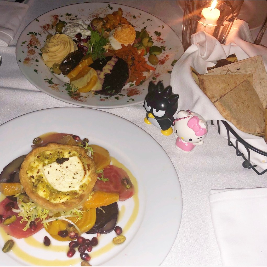 We tried “The Mezze” and The Fresh Goat Cheese and Pistachio Tart with a Trio of Roasted Beets.