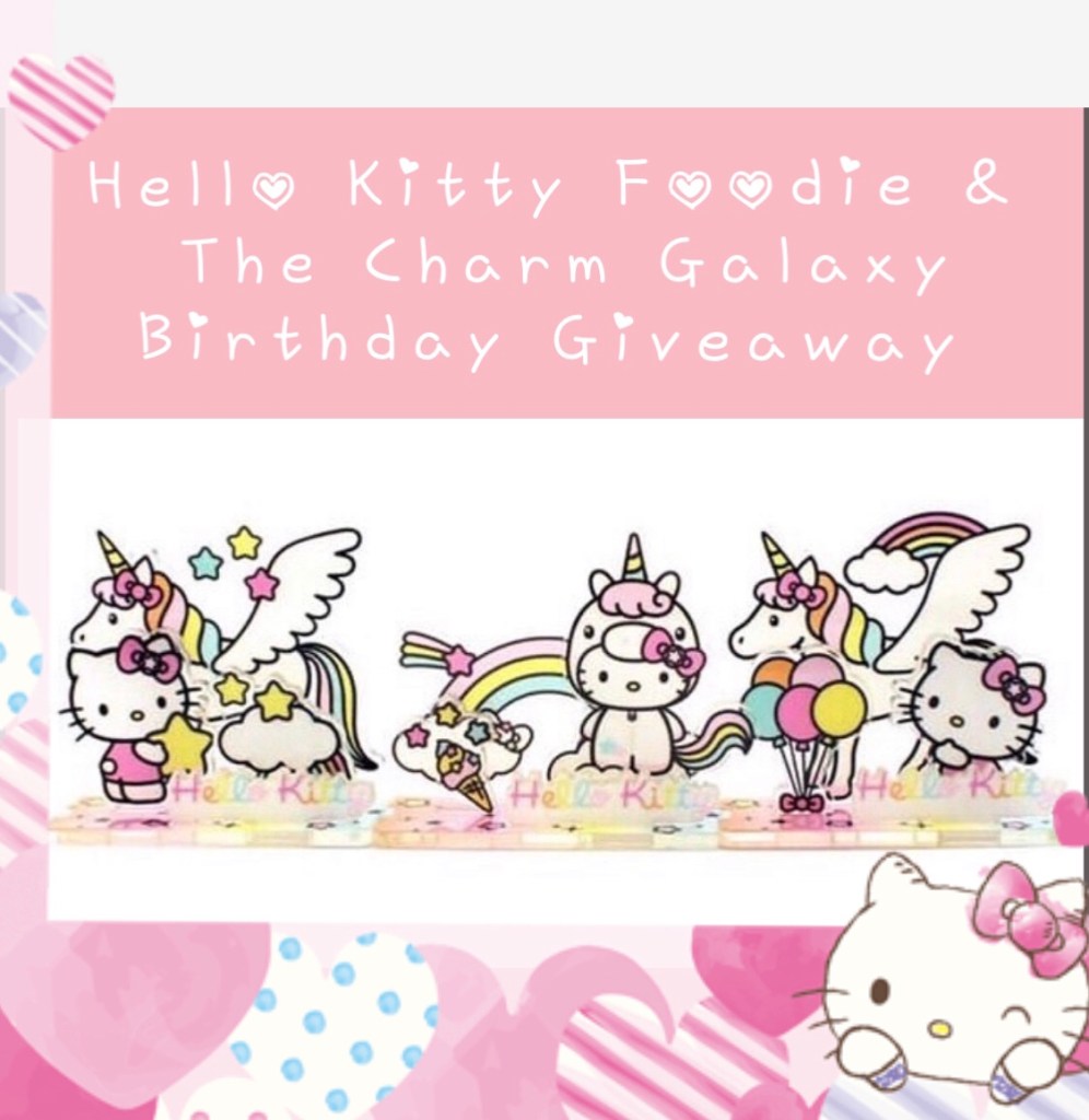 Hello and Happy Birthday Hello Kitty Giveaway 🎉! Today is Hello Kitty’s birthday and in honor of Hello Kitty’s birthday 🎂 I’m collaborating with The Charm Galaxy on one very special giveaway on my Instagram @http://www.instagram.com/hellokittyfoodie! 😊 One lucky winner will get a chance to win the entire Hello Kitty Unicorn 3d series collection from the @thecharmgalaxy! 🦄