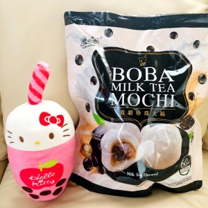 In my last blog post; I shared how much I love boba. Another favorite treat of mine is mochi. So what happens when two of my favorites comes together? I become one super happy and excited Hello Kitty Foodie. This is exactly what happened when I saw Boba Milk Tea Mochi at Costco.