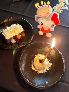 Last but definitely least was dessert! This birthday girl got to make a wish with some Halo Halo Tres Leches cake as well as Kopiko Creamy Blanca gelato. The Halo Halo Tres Leches was different take on traditional Halo Halo. Instead of ube jam; this Halo Halo had ube cake with jackfruit whip surrounded with all the different Halo Halo ingredients like sweetened kidney beans, Sago and Gulaman (gelatin). This was such a sweet ending to my birthday celebration here!