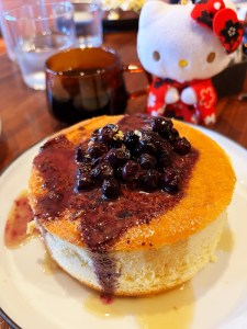 This fluffy creation was served with blueberry compote, salted butter, and maple syrup, striking a perfect balance between sweet and savory.