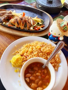 The fajitas came with grilled chicken, skirt steak, colorful peppers, and fresh guacamole on the side. The fajitas paired well with the rice and frijoles de la olla.